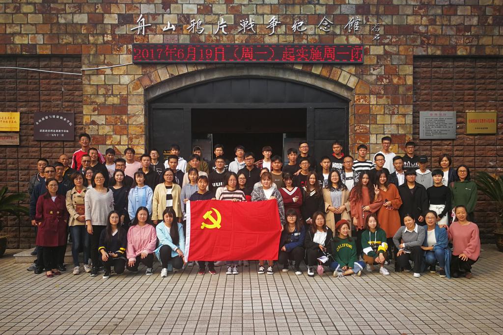 图为社科体艺部与数百名学生一起到舟山市鸦片战争纪念馆开展思政实践教学活动