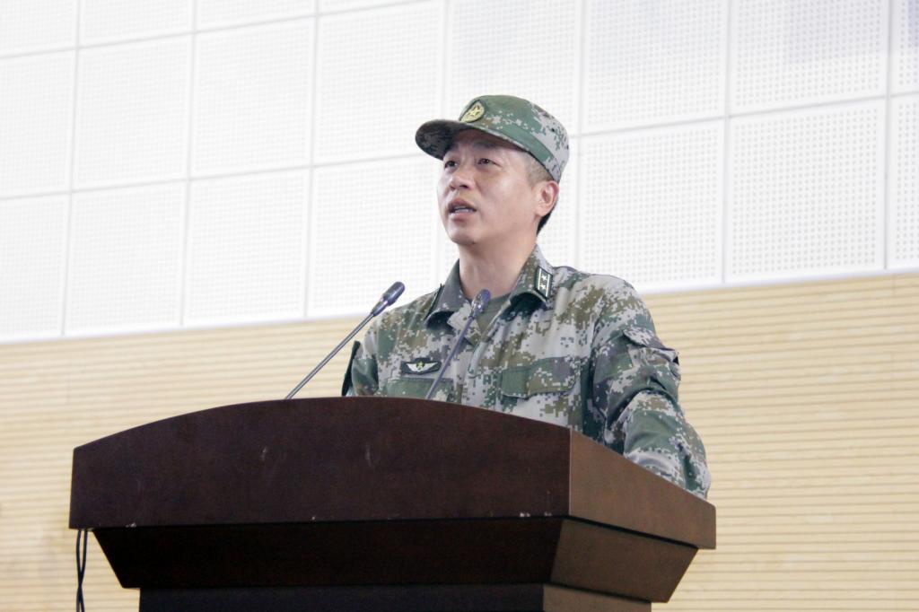 邬少华副主任代表承训部队发言。他说,在接下来的14天时间里,承训官兵会全心全意地带领全体新生,共同系好大学生活乃至今后人生的“第一粒扣子”,上好“铸魂第一课”,为同学们今后有更为强健的体魄、更顽强的意志、更坚定的信念,承受“个人所希、祖国所需”的人生加以助力。“人生就是一场马拉松,重点不在于一直领先,而在于你是否一直在奔跑一直在成长,最美的风景一定在前面等着你”,而在这个过程中,毅力与信念很关键。他对同学们提出了“三个期待”:坚持、珍惜和走在前列。未来三十年,同学们既是追梦人,也是圆梦人,要未雨绸缪、打好基础、做好准备,这次军训就是最好的开始。