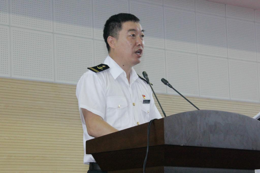 党委副书记、校长吴中平向相约海运的2365名新同学表示热烈欢迎,向承训教官致以最诚挚的谢意,并为庄利华、王倩、苏天元、朱思伟四位2019级新生送上了特别的生日祝福。他说,风好正扬帆,苦尽甘自来,学校将尽可能为大家创造足够广阔的舞台,供大家驰骋。