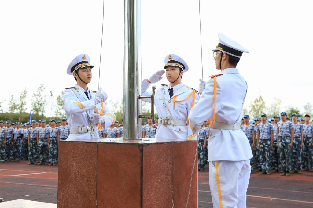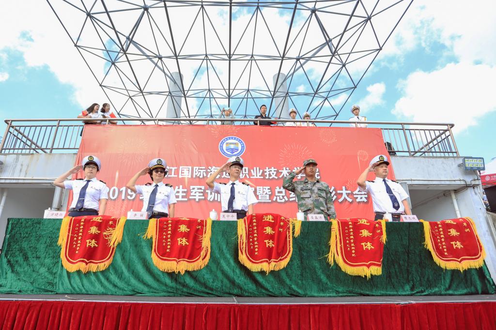 庄严肃穆的升旗仪式后,2019级新生进行了分列式汇报表演。伴随着激昂热烈的军乐声,航海工程学院、船舶工程学院、港口管理学院、海洋旅游学院和国际教育学院的参训新生依次排着整齐的方队,迈正步、行军礼,从主席台前经过接受检阅。同学们阵容整齐、口号响亮、气势昂扬,展现出的团队素质和精神风貌。表演最后,新生们变化队形、挥舞红旗,齐声共祝祖国母亲生日快乐!气氛热烈,情感真挚,在场师生们深受感动。