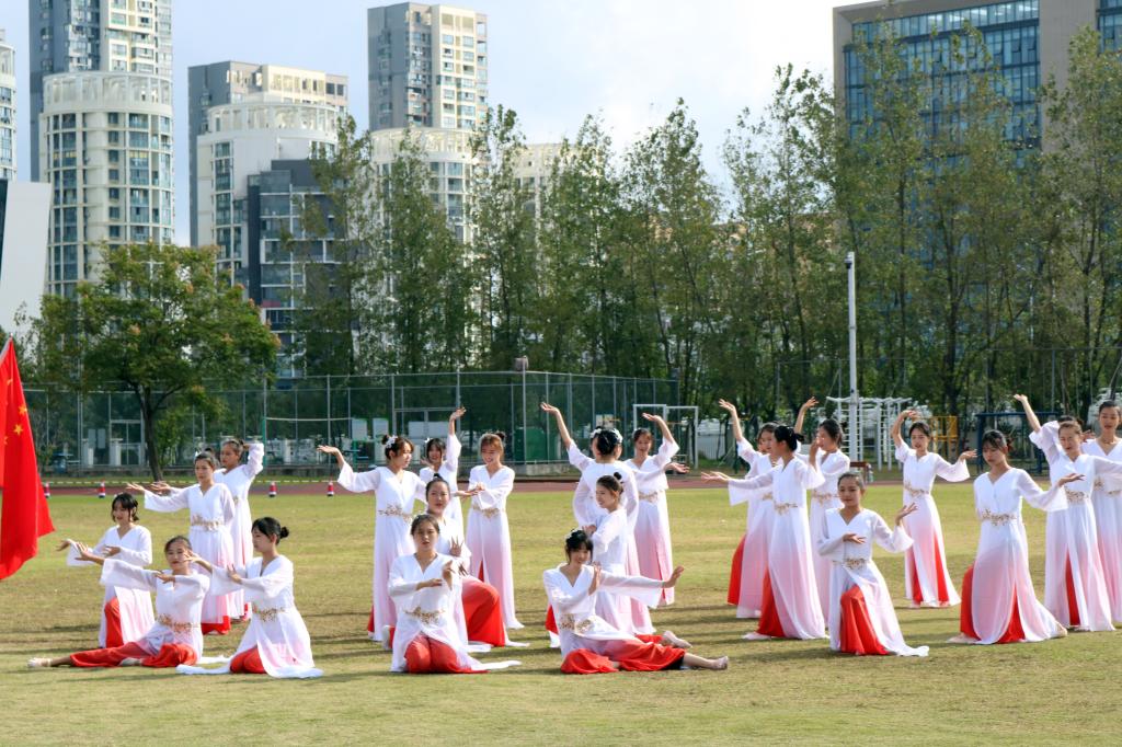 在青春洋溢的文体表演环节,领导来宾和全体师生观摩了军体操枪械表演、水鼓舞、舞蹈、啦啦操等集体表演。各二级学院选送的精彩演出赢得了观众阵阵欢呼,现场气氛热烈,点燃了运动场上的热情。随后,学校还举行了阳光体育广播操比赛,六个二级学院队列整齐,动作划一,充分展示了海运学子努力拼搏、积极向上的精神风貌。