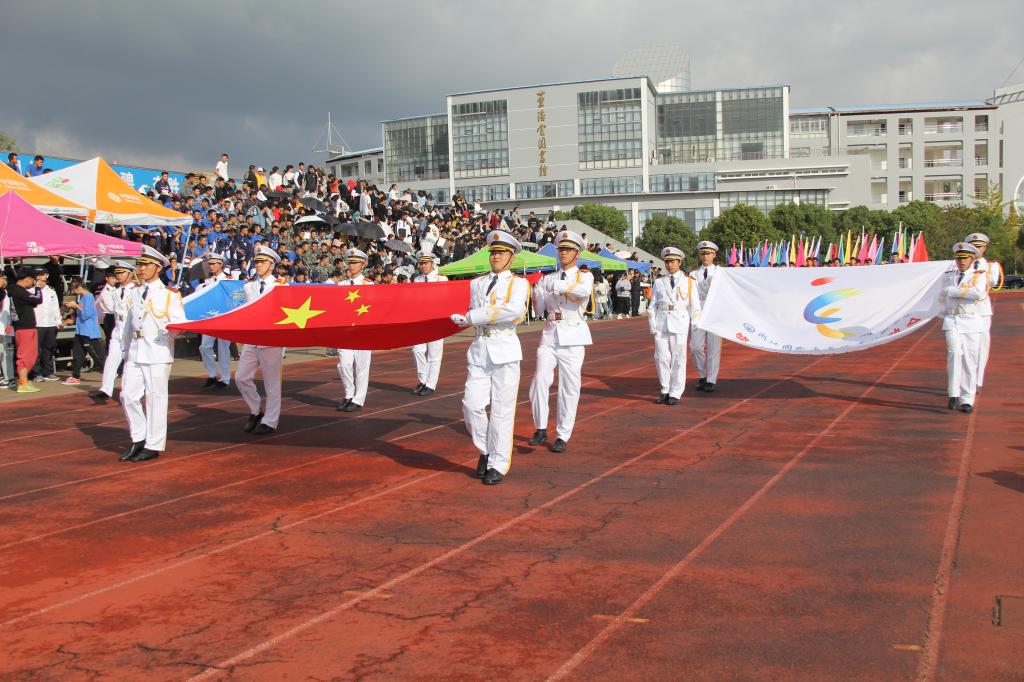 伴随着运动员进行曲,英姿飒爽的国旗护卫队、团学干部组成的彩旗队、裁判员方阵、各二级学院师生组成的运动员方阵依次入场,以整齐有力的矫健步伐和昂扬向上的精神风貌通过主席台,接受检阅。健康、活力、阳光,他们展现了海运学子的青春风采。