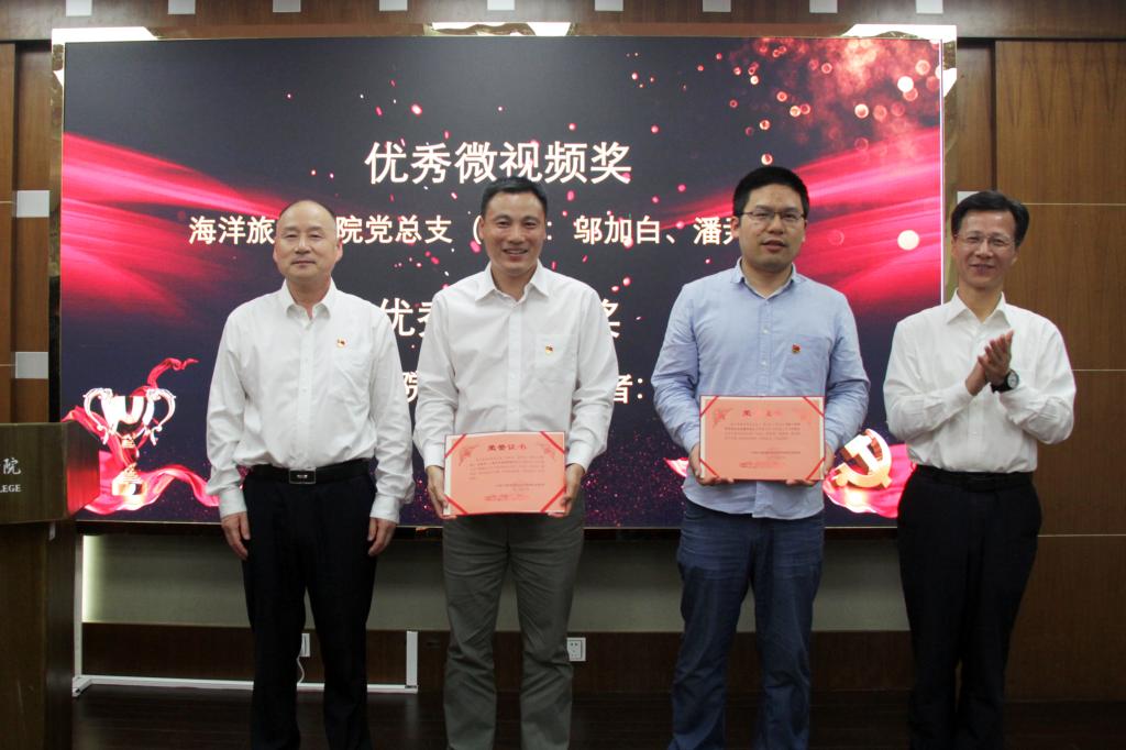 海洋旅游学院党总支获得“守初心 担使命”微视频、微动漫设计比赛优秀微视频奖;港口管理学院党总支获得“守初心 担使命”微视频、微动漫设计比赛优秀微动漫奖。
