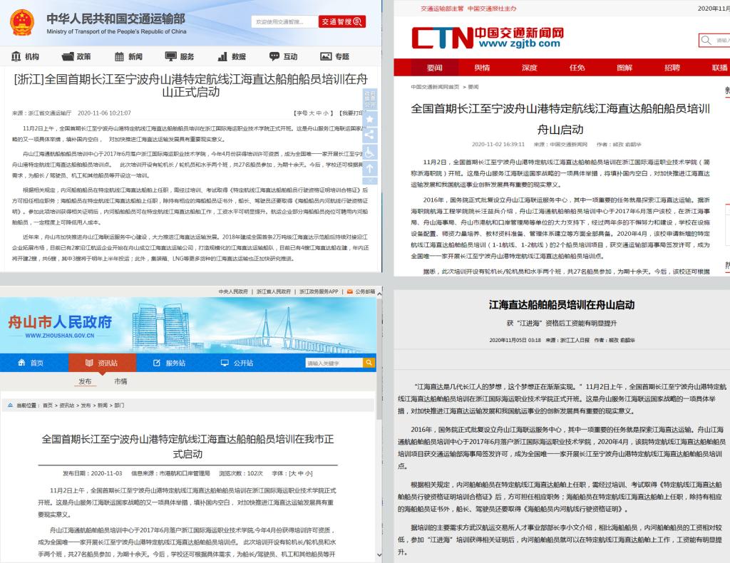中华人民共和国交通运输部、浙江省交通运输厅、广西壮族自治区交通运输厅、舟山市人民政府的网站也刊载了相关信息,扩大了学校的知名度和影响力。