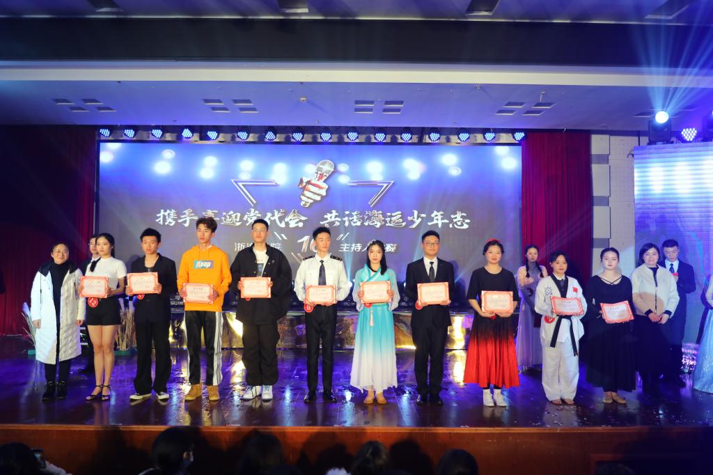 经过两个小时的激烈角逐,最终,航海工程学院何嘉乐获冠军、海洋旅游学院雷蕾获亚军、船舶工程学院许政杰获季军。航海工程学院何嘉乐、刘世杰,船舶工程学院沈佳怡、许政杰,港口管理学院钱悦玥、章佳泽,海洋旅游学院翁舒琪、方一庆、雷蕾和国际教育学院王佳琪获“校十佳主持人”称号。出席领导及嘉宾分别为获奖选手颁奖。