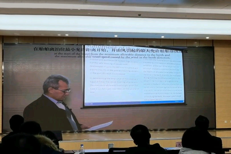 线上,乌克兰马卡洛夫国立造船大学教授邦达伦科和哈里托诺夫分别带来《船舶靠泊模拟仿真研究》《乌克兰数字化造船的形成模式》的主题报告。东京海洋大学教授村井康二、韩国首尔大学教授李信亨也通过视频交流分享。