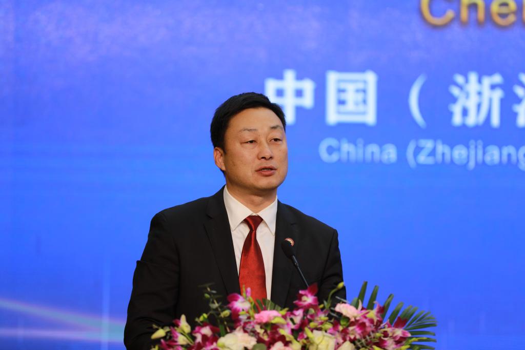 我校党委书记苏为泽、中国太平洋学会海洋智能装备分会副会长兼秘书长吕日恒、舟山市人民政府副市长方维分别致词。