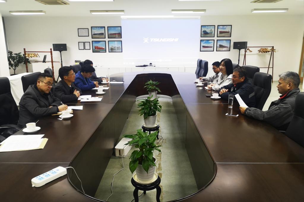 2月1日,校长吴中平、副校长李丽、船舶工程学院和办公室相关负责人一行5人走访了常石集团(舟山)造船有限公司。公司总经理佐藤二郎热情接待。