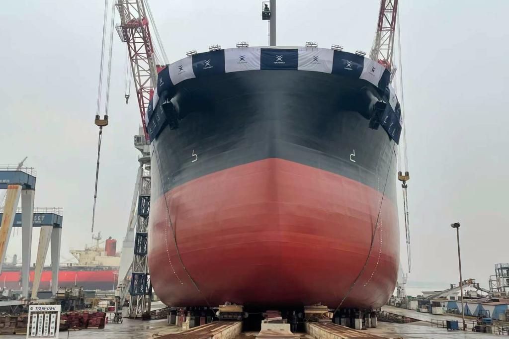 应佐藤二郎的邀请,吴中平校长一行还参加了首制4.2万吨级散货船的下水仪式,随着吴中平校长扳起启动开关,新船缓缓下水,双方共同见证这一重要时刻。(图文/蒋仲仁)