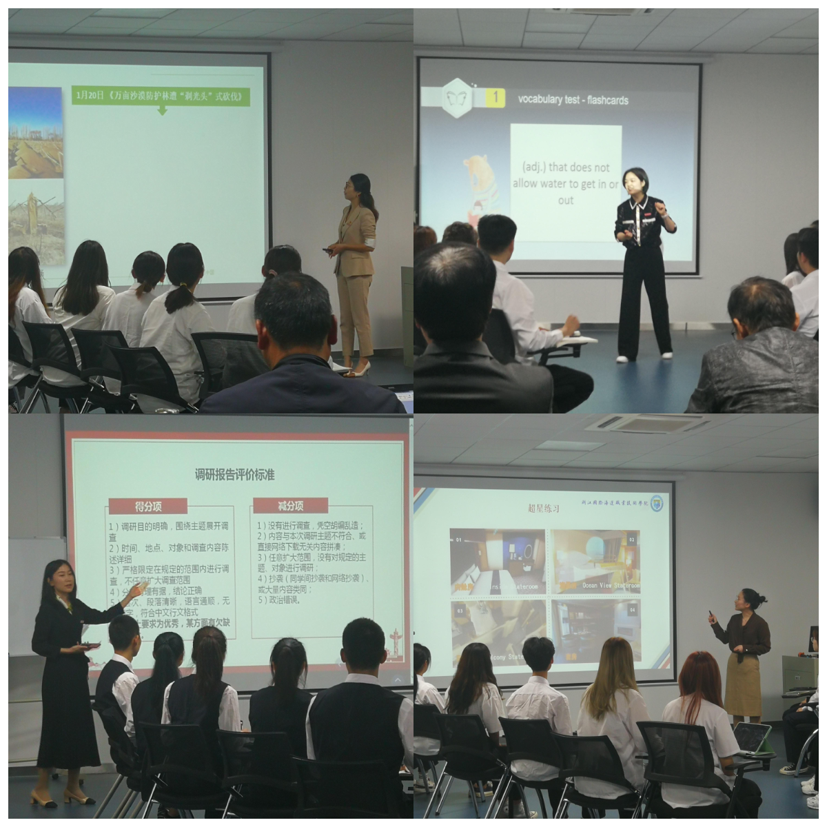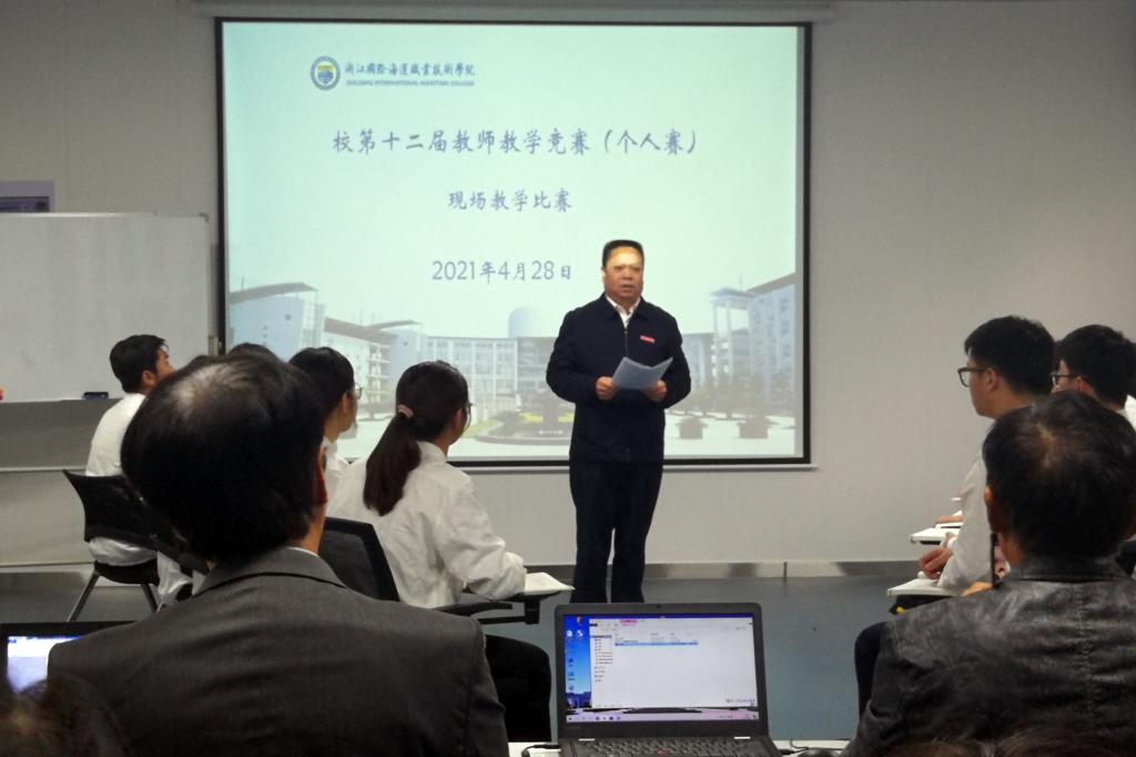 为进一步加强青年教师教学能力培养,夯实青年教师教学基本功,促进课堂教学质量提升,今年2月起,学校启动了第十二届教师教学竞赛活动。4月27日,教师教学竞赛个人赛现场教学比赛在邮轮客舱实训中心举行,本届比赛由校工会和教务处共同举办。校党委书记苏为泽、校长吴中平亲临比赛现场指导,副校长李丽出席比赛并担任校内评委,校工会主席刘相出席比赛并致辞。本届比赛还特邀宁波职业技术学院叶鹏教授、浙江工商职业技术学院王璞高工,浙江舟山群岛新区旅游与健康职业学院李慧刚副教授担任评委。
