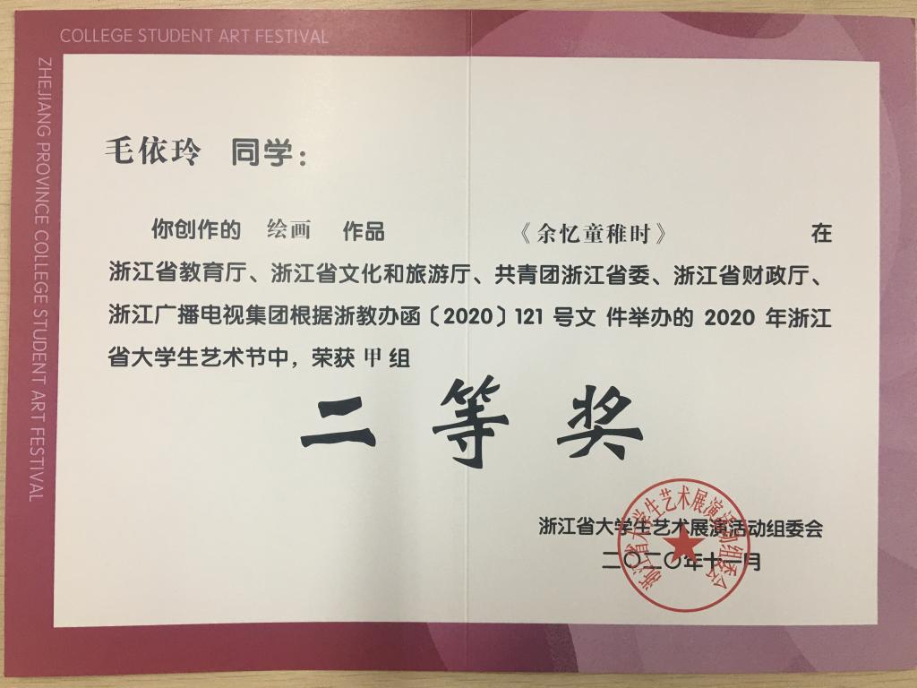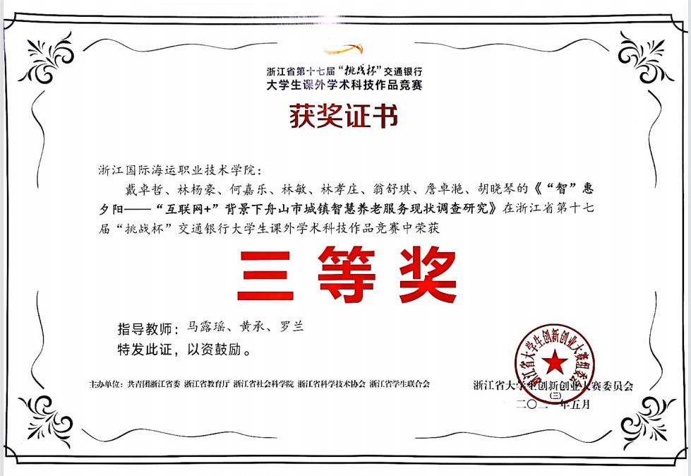 浙江省第十七届“挑战杯”大学生课外学术科技作品竞赛  二等奖