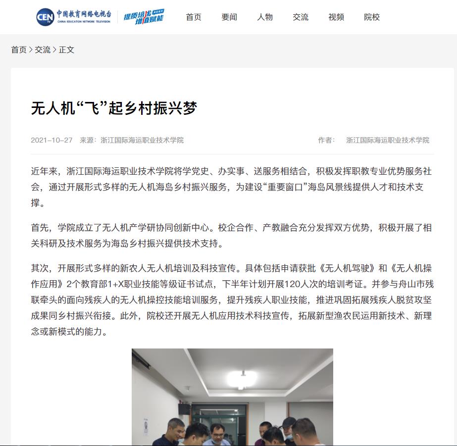 近日,由学校党委宣传部、教务处牵头组织申报了6个教育部提质培优宣传典型案例,其中航海工程学院姜波等老师提交的“对接国家战略 服务舟山江海联运服务中心建设”、海洋装备工程学院卓宏明等老师提交的“无人机‘飞’起乡村振兴梦”等2个案例成功入选宣传典型案例,在中国教育网络电视台发表。