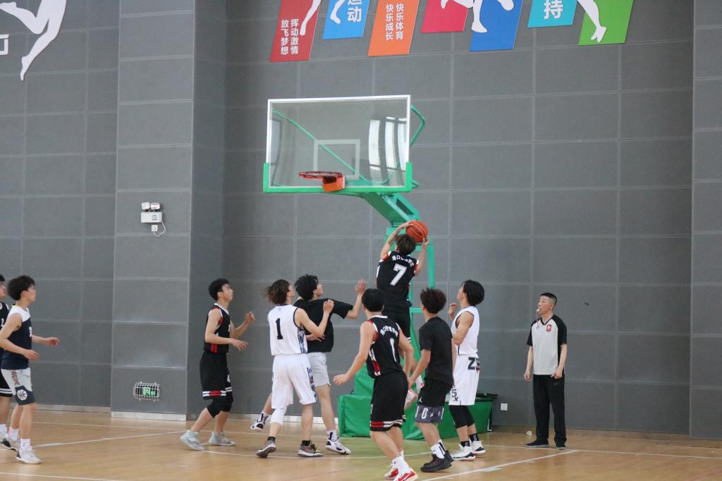 文化体育部举办了球类运动赛,吸引了近1000名同学参加了足球、篮球、排球、羽毛球等比赛,在活动中愉悦心情,运动中挥洒汗水。