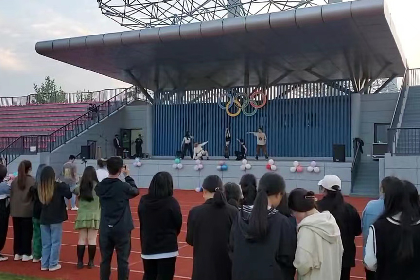 海洋旅游学院举办了“百年星火淬青春”户外文艺晚会,通过现场+线上“抖音”平台直播的方式进行,以“不忘初心”、“砥砺前行”、“强国有我”三个篇章,邀请了动漫社、街舞社、弦心社通过歌舞、歌曲联唱、器乐演奏等形式,以歌舞欢度假期。