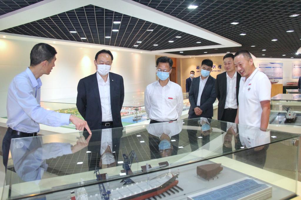 吴中平陪同谢春林一行参观了国家级现代航运虚拟仿真实训基地、综合实训基地、船舶知识馆等。(办公室)