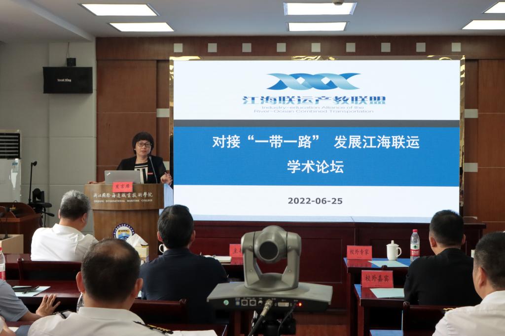 6月25日下午,作为庆祝第十二届世界海员日系列活动之一,“对接‘一带一路’ 发展江海联运”学术论坛在我校成功举办。本次论坛邀请了政府机构、行业企业以及院校等专家学者,围绕江海联运发展、国际海事服务、高素质海员队伍建设等内容,以线上线下相结合的方式开展。国际海事服务研究中心、江海联运绿色发展研究院等科研平台及企业代表40余人参加论坛。论坛由副校长李丽主持。