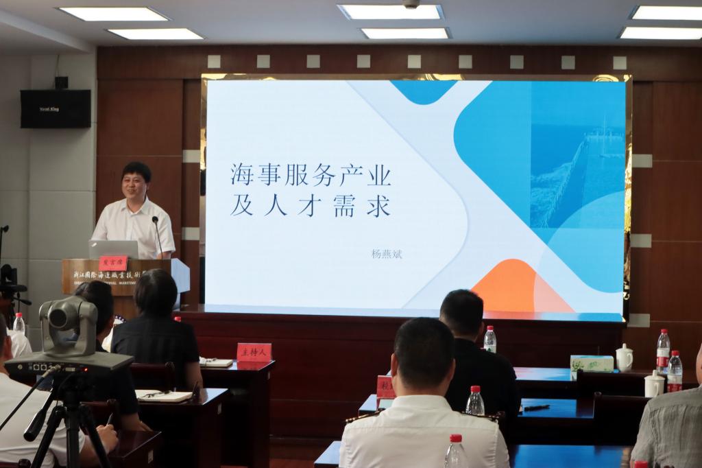 最后,浙江蔚海海洋科技有限公司董事长杨燕斌围绕舟山海事服务产业,提出了“海事服务生态圈”的概念,并对海事服务人才需求进行了深入分析。