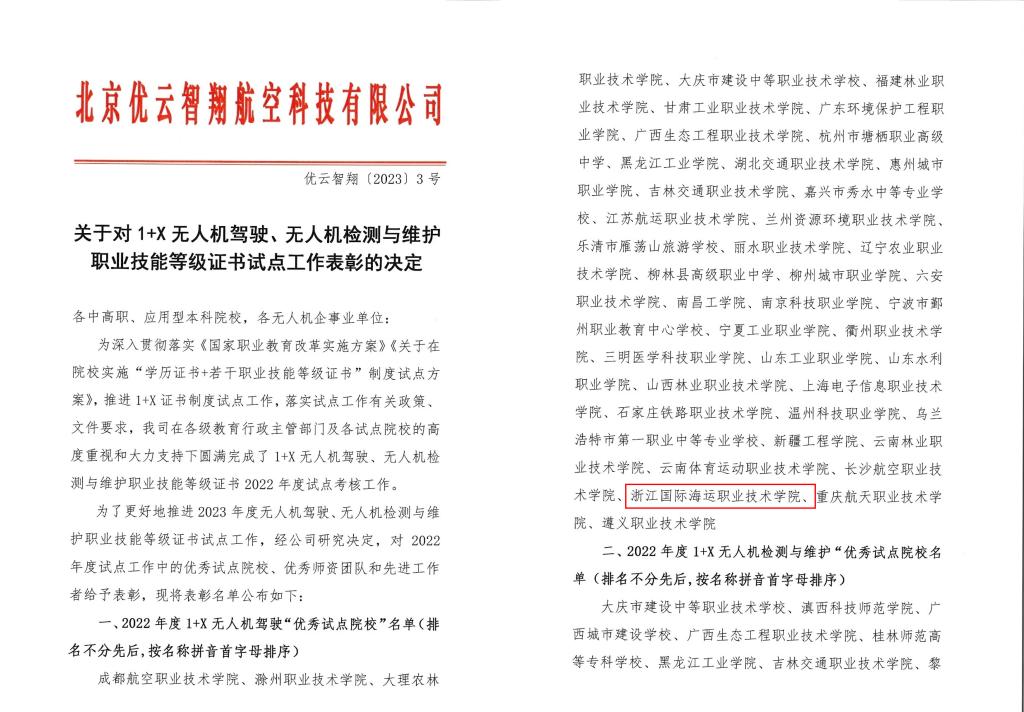 我校荣获2022年度1+X“无人机驾驶”优秀试点院校