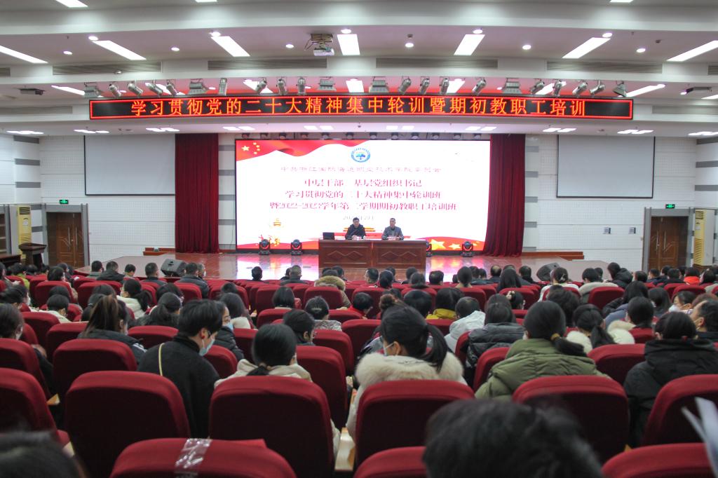 2月15日上午,学校在图书馆四楼报告厅举行中层干部、基层党组织书记学习贯彻党的二十大精神集中培训班。校党委书记苏为泽出席开班仪式并作动员讲话,党委委员、宣传部(统战部)部长陈永芳主持,全体校领导、中层干部和基层党组织书记参加。此次培训班邀请中共二十大代表、舟山职业技术学校正高级教师张赛芬作专题辅导报告。