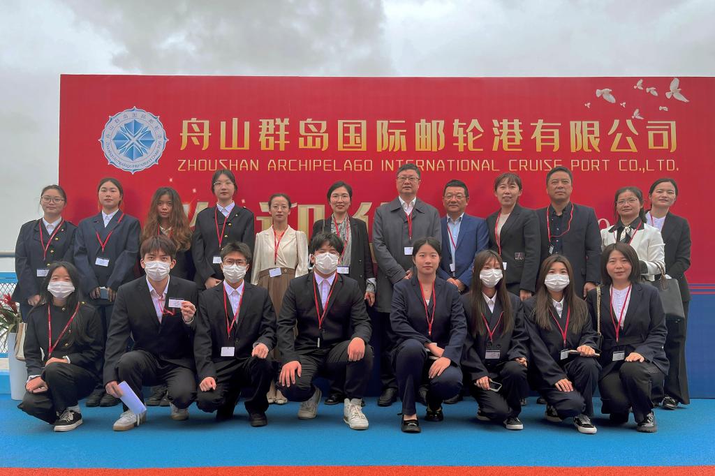 4月23日,学校组织海洋旅游学院国际邮轮乘务管理专业以及航海工程学院航海技术、轮机工程技术、船舶电子电气技术专业50余名师生代表参加了停靠在舟山国际邮轮港的“招商伊敦”号邮轮的专业实践活动。校党委书记苏为泽、海洋旅游学院院长俞海平参加活动。