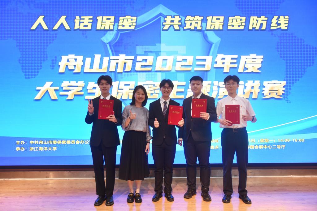 5月15日下午,舟山市2023年度“人人话保密”主题演讲比赛在浙江海洋大学举办。我校团委推荐的4名同学在比赛中表现优异,斩获一等奖2项,二等奖1项,三等奖1项。