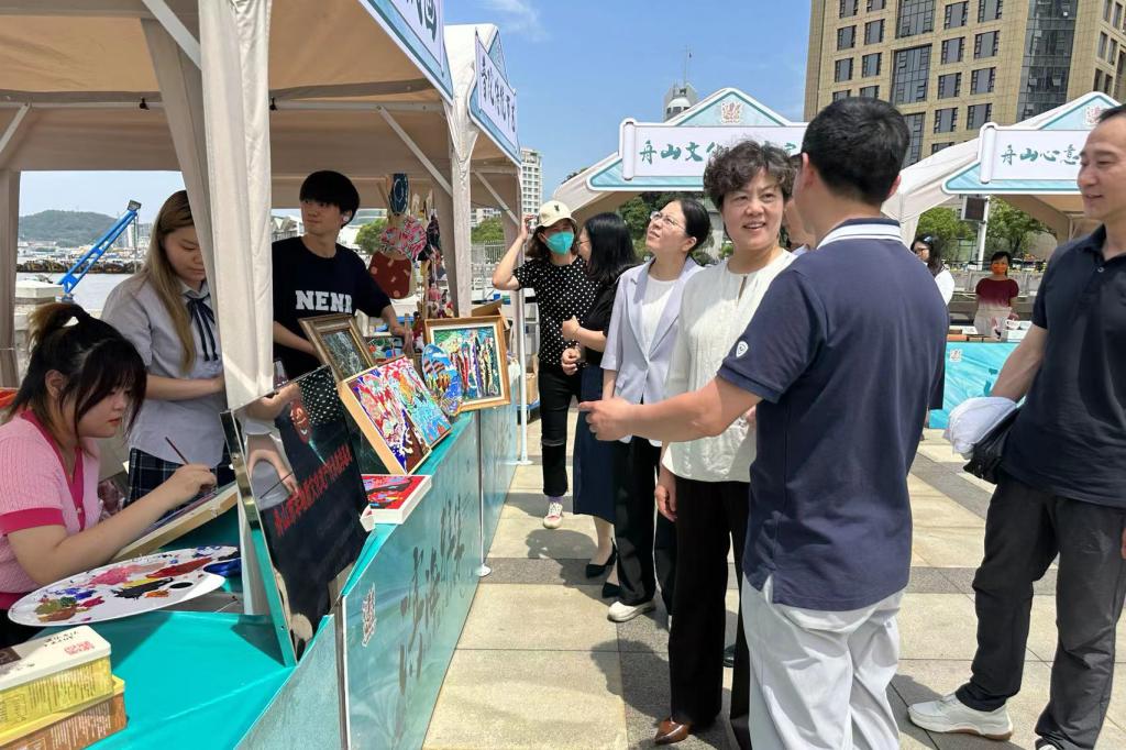 6月10日,应舟山市文化和广电旅游局邀请,我校参加了2023年“文化和自然遗产日”系列主题宣传活动。活动在定海海滨公园举行,向公众展示舟山市文化遗产保护成果和资源。我校2022级数字媒体艺术设计专业学生应邀在现场作画,吸引了市民围观。