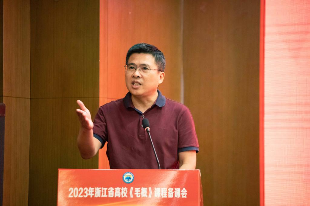 会议由浙江省高校《概论》课程教学研究会会长、浙江理工大学红色文化研究院院长渠长根教授主持。校党委书记苏为泽、舟山市委宣传部副部长钟传宏出席开幕式。来自省内78所高校的一百多位专家、学者、教师代表参会学习、交流、研讨。