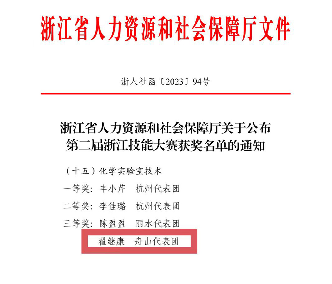 618-20日,第二届浙江技能大赛“化学实验室技术”赛项在金华职业技术学院举行,来自全省17支队伍同台竞技,展现了新时代化工行业的工匠风采。经过激烈角逐,我校由熊丽萍和戴冬燕老师指导,石油化工学院2022级石油化工技术专业的翟继康荣获该赛项三等奖。