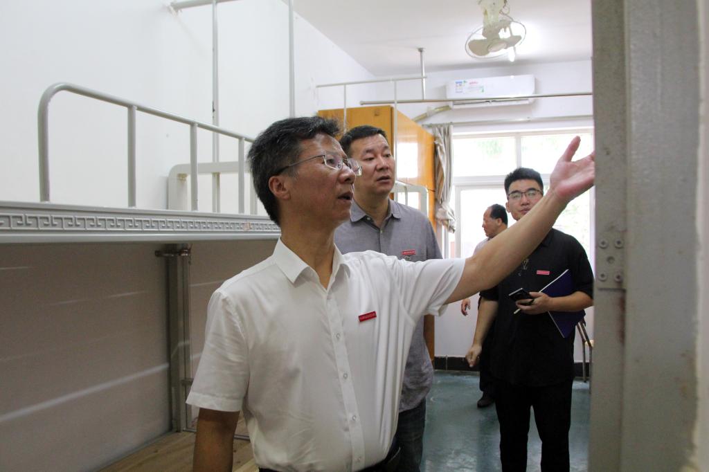 吴中平校长一行先后来到学校北门岗、学生宿舍、食堂、商贸区、国际交流中心等地,进行深入检查。本次检查内容涵盖了网络安全、学生管理、消防安全管理、交通安全管理、公共卫生安全管理、校园及周边环境综合治理、校内建筑及校园环境安全等方面,对于排查中发现的安全隐患吴中平校长提出了整改意见和建议,要求相关部门明确整改措施,跟踪落实,按时整改到位。