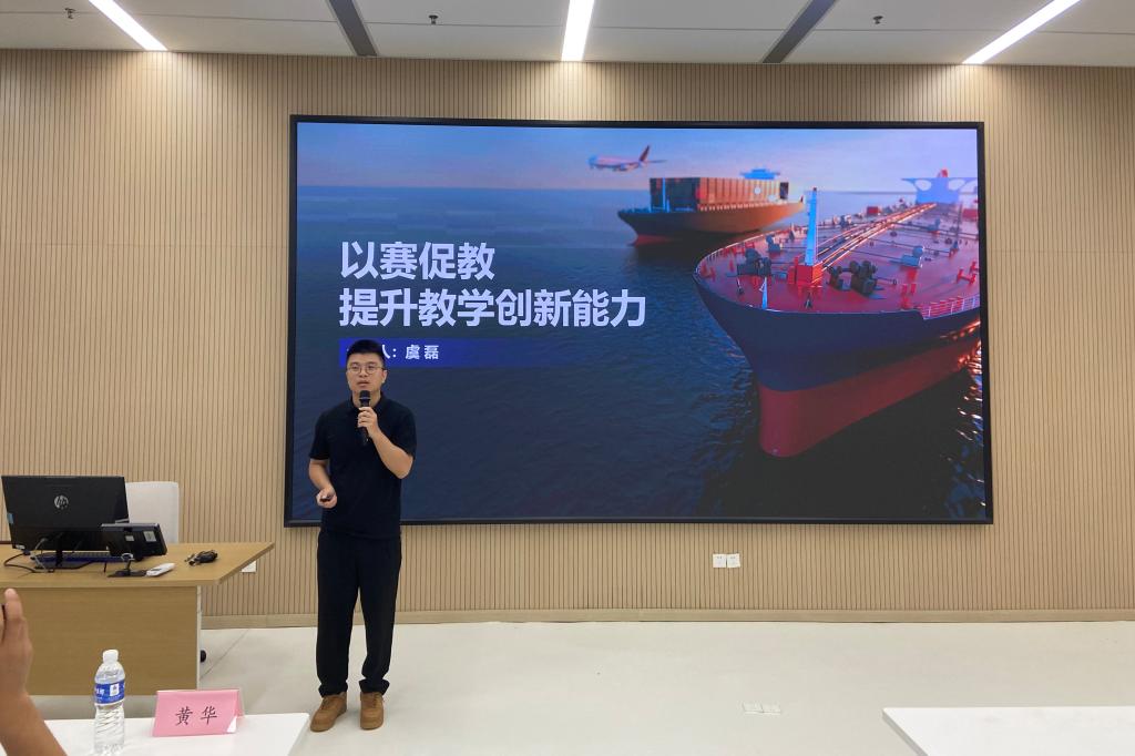 航海工程学院的虞磊老师作为上届研习营的学员重点以参加省教师教学能力大赛的经历从课程重构,教学策略,课程思政等三个方面与老师们做了研习分享。
