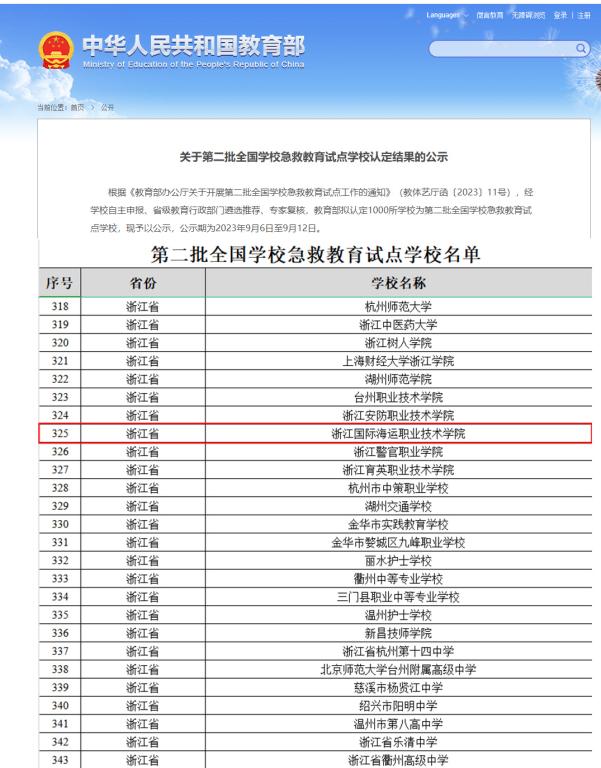 日前,教育部发布了《关于第二批全国学校急救教育试点学校认定结果的公示》,全国共有1000所学校,我校成功入围。