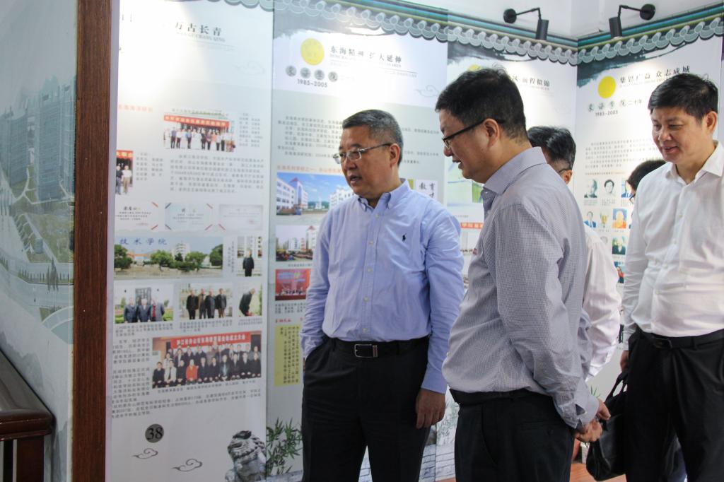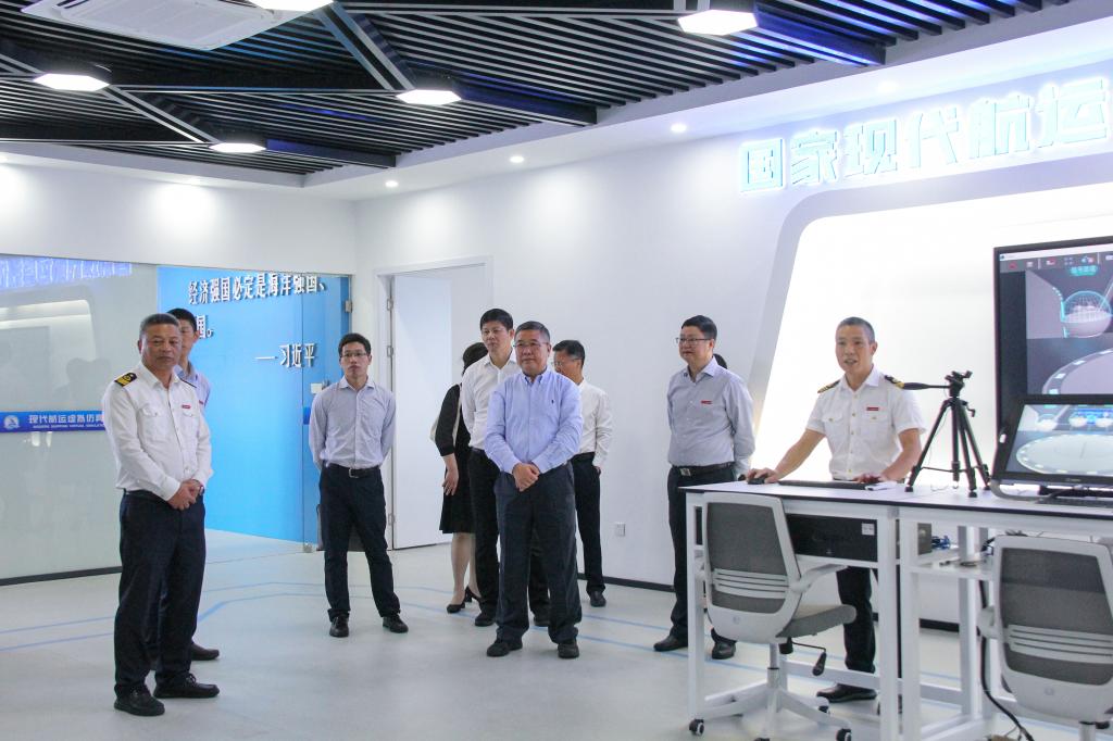 张明超一行参观了学校航海模拟器、游艇模拟器、轮机模拟器、国家级航海虚拟仿真中心、全国舰船科普教育基地船舶知识馆、省教育系统廉洁教育基地东海阁等,深入了解我校的办学条件、实习实训、人才培养和内涵建设等方面工作开展情况。