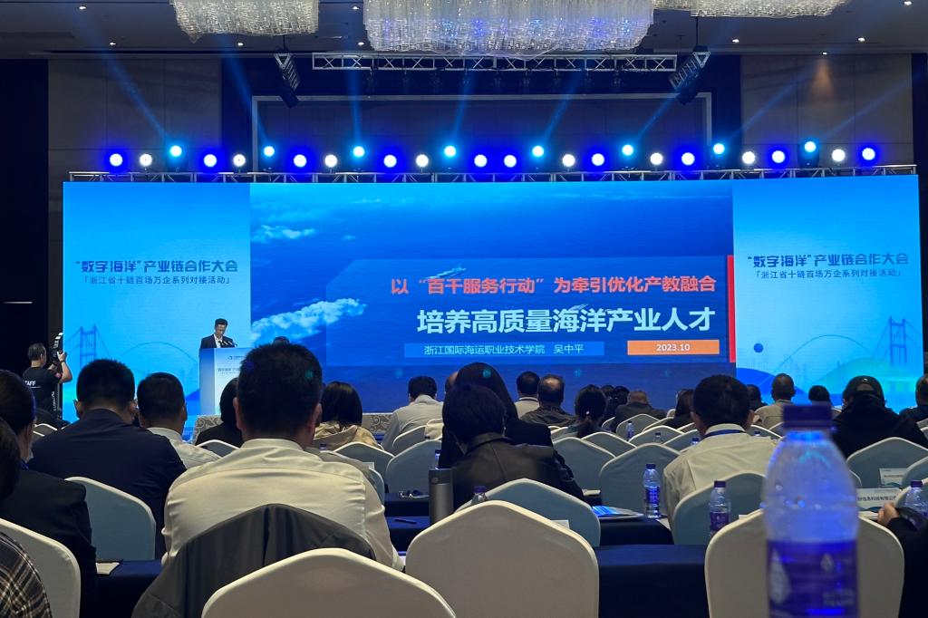 10月23日,浙江省“十链百场万企”系列对接活动之“数字海洋”产业链合作大会在舟山举行。本次大会由省经信厅、舟山市政府主办,舟山市经信局、普陀区政府、省技术创新服务中心共同承办。全省经信系统相关人员、企业代表、高校代表、金融机构代表及行业专家等近200人参加。省经信厅党组成员、副厅长、一级巡视员厉敏,舟山市委常委、副市长韩峻出席并致辞。