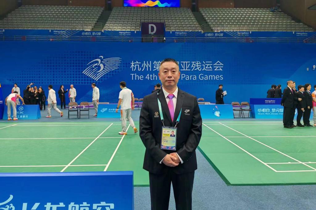 9月5日,应建伦收到了杭州第19届亚运会组委会下发的选派文件,有幸成为杭州第4届亚残运会羽毛球项目92名国内技术官员之一,开启了在杭州滨江体育馆连续十一天的执裁工作。在本届亚残运会上,他严格要求自己,服务好选手,做到公正裁决,全力维护比赛的公平正义。