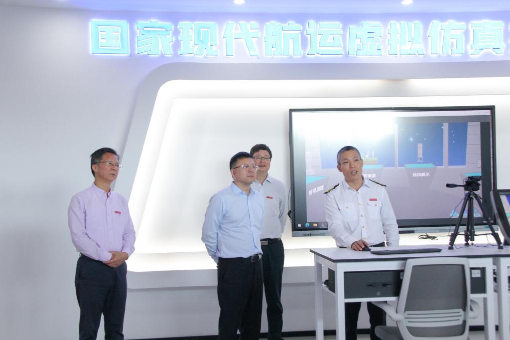 李武杰一行参观了学校航海操纵模拟器、游艇模拟器、轮机模拟器、国家级航海虚拟仿真中心、全国舰船科普教育基地船舶知识馆等,深入了解我校的办学条件、实习实训、人才培养和内涵建设等方面工作开展情况。