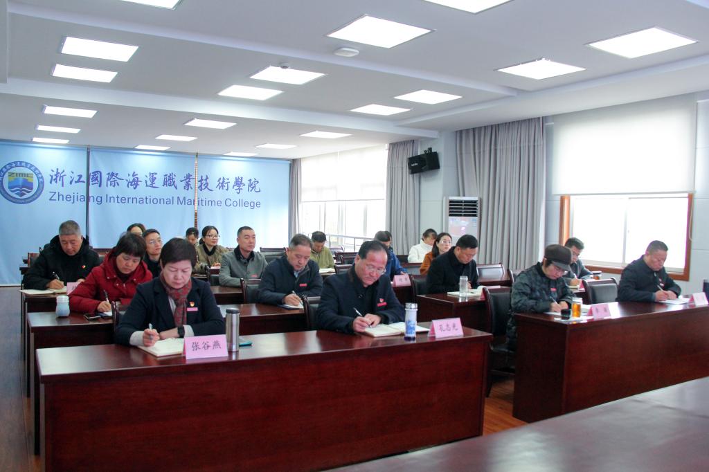 会议第一阶段,邀请了舟山市委党校副教授黄正光以《牢固树立正确政绩观 奋力推进高质量发展》为题,为校党委理论学习中心组成员及各党总支(直属党支部)书记作专题辅导。他结合习近平总书记关于树立和践行正确政绩观的重要论述,围绕“要始终坚持正确的政治方向”“要始终坚持以人民为中心”“要力戒形式主义和官僚主义”“要始终坚持担当实干”等四方面进行了深入浅出地讲解。
