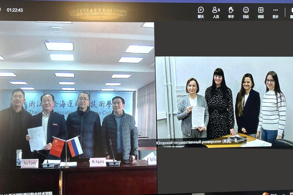 12月26日下午,学校与俄罗斯尤戈尔国立大学举行合作办学视频签约仪式。校党委副书记孔志光,俄罗斯尤戈尔国立大学教育活动副校长塔蒂亚娜·科斯蒂列夫,国际合作中心主任阿克桑娜·戈洛洛博娃,以及我校国际教育学院院长吴旭光和石油化工学院院长杨加力等出席签约仪式。