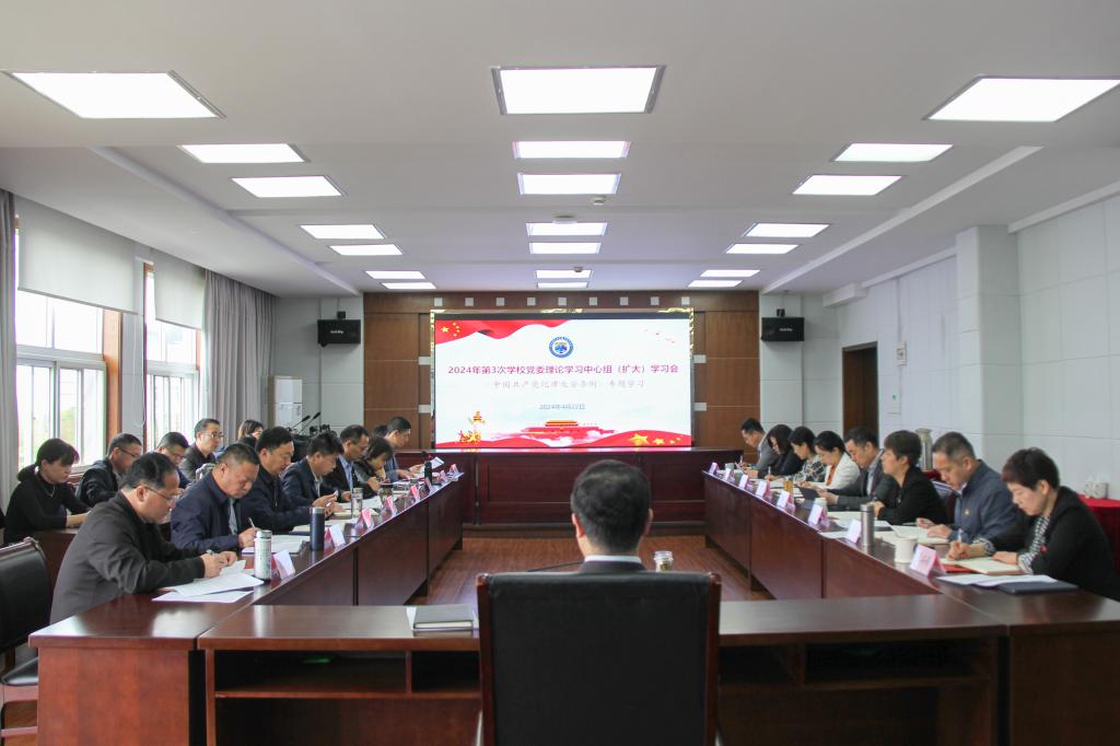 4月22日,校党委理论学习中心组(扩大)在行政楼401会议室举行了2024年第3次集体学习会。会议主题是深入学习领会习近平关于党纪教育的重要讲话精神,根据中共中央办公厅关于在全党开展党纪学习教育的通知要求,认真学习《中国共产党纪律处分条例》,做到学纪、知纪、明纪、守纪,进一步强化纪律意识、加强自我约束、提高免疫能力,增强政治定力、纪律定力、道德定力、抵腐定力,始终做到忠诚干净担当,推进学校事业健康有序发展。党委书记苏为泽主持会议并讲话。