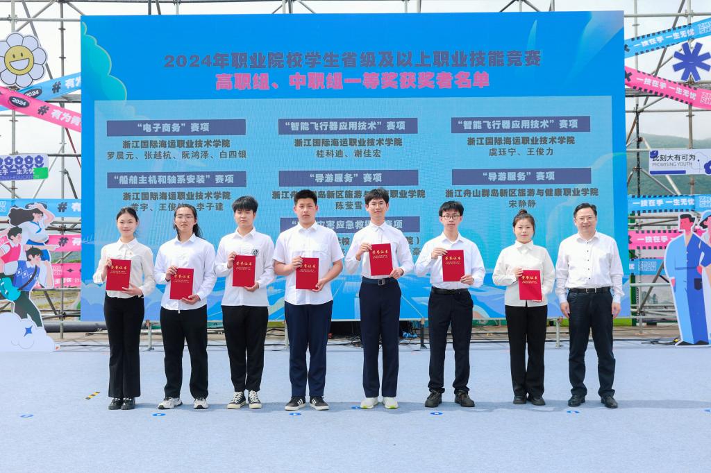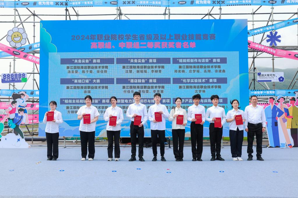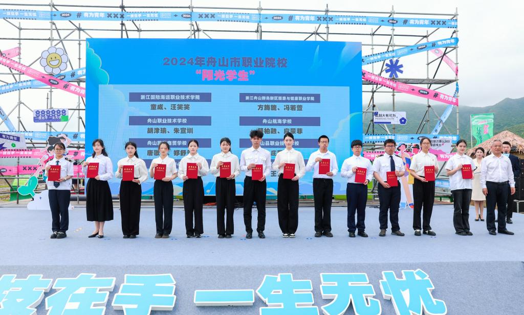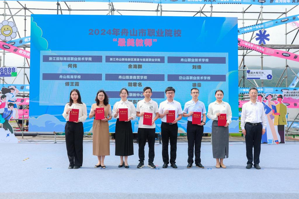 启动仪式上,现场颁发了2024年职业院校学生省级及以上职业技能竞赛、“2022-2023学年度国家奖学金”、2024年舟山市职业院校“最美教师”、“阳光学生”等奖项。我校“最美教师”何伟和2名“阳光学生”、55名省职业院校技能大赛获奖学生、4名国家奖学金获奖学生得到了表彰,展现了职业院校师生自强不息、踔厉奋发的精神风貌。