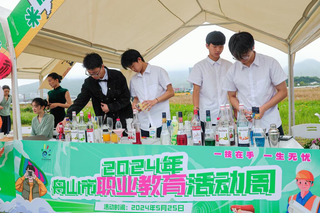 活动现场,茶道、香道、书法、渔绳结制作、花艺、渔民画创作、智能焊接、摩尔斯电码发送等40余种职业教育技能成果参与展示,全面展现了职业技能的魅力。我校摩尔斯密码发送、木船模型拼接、渔民画创作、网线制作体验、调酒等参与其中。