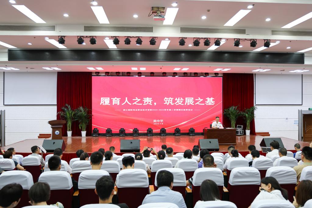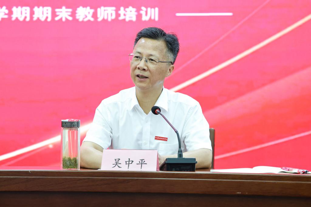 本次教师培训第一课由学校党委副书记、校长吴中平作《履育人之责,筑发展之基》专题讲座。讲座紧紧围绕教书育人是教师的基本职责、学校发展的基础是教师、教师履职促发展中应该重视的几个方面进行阐述,鼓励全校教师要树立信心,要加强学习、注重创新、爱校爱生,要身正为范,希望老师们要弘扬教育家精神,牢记为党育人、国家育才的初心使命,自信自强,踔厉奋发,为学校高质量发展作出更大的贡献。
