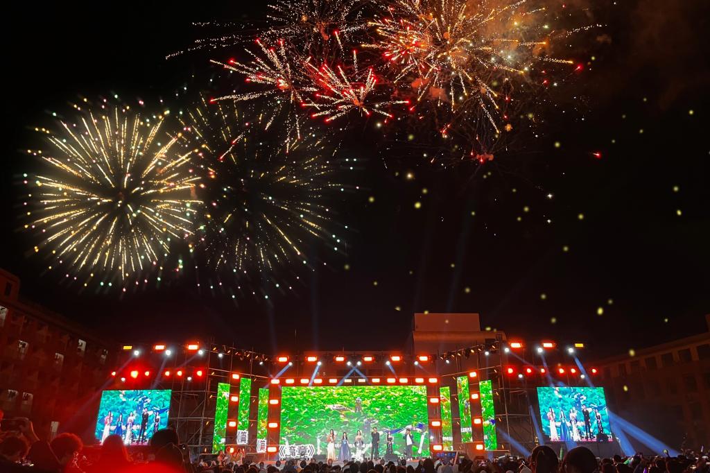 本次演出在学校舞狮队的《龙腾虎跃》中拉开帷幕,共分为三个篇章。第一篇章“扬帆启航”以充满情感和故事性的歌舞、情景剧,展现了历史壮阔和文化魅力;第二篇章“筑梦成长”通过舞蹈和音乐演绎,传递出师生融洽的关系和校园生活的美好;第三篇章“展望前行”用充满活力的舞曲表达了学生们对个人成长和学校发展的憧憬与向往。随着熟悉的歌曲《篇章》,参与演出的师生们再次登台,共同演绎这首充满青春气息的歌曲,台上台下融为一体,所有观众随着音乐节奏挥动双臂,齐声高歌,将现场气氛推向了最高潮。
