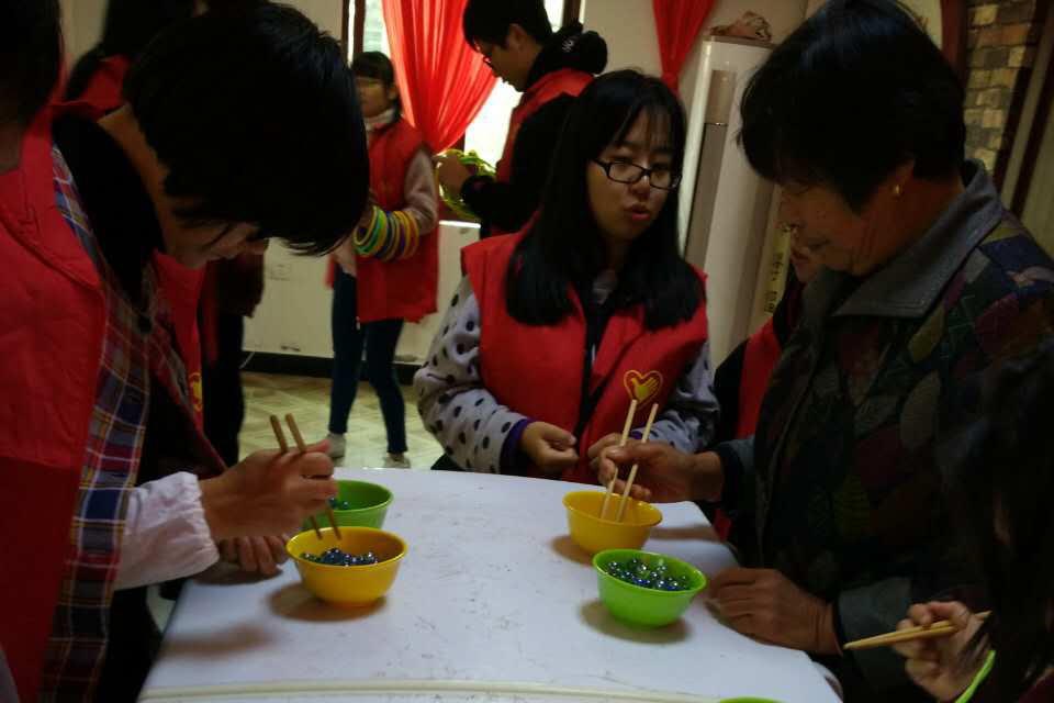 活动中,同学们协助舟山阿拉义工和台湾志工考察团的志愿者们一起为村民修理家用电器、理发、检查身体等,学到不少技能。当天上午,同学们的主要任务是陪伴老人一起玩游戏,夹弹珠、欢乐套圈和扔飞镖等这些老人们熟悉的游戏似乎带着他们回到了年轻的时候,还有老人热情地用“舟山普通话”给同学们介绍游戏小窍门,现场充满了欢声笑语,画面温馨和谐。