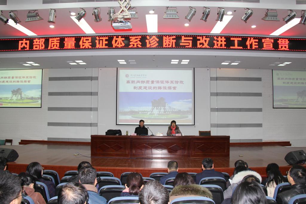 为进一步贯彻落实教育部、省教育厅关于内部质量保证体系诊断与改进工作的相关文件精神,明确“诊改”工作要求,提高人才培养质量,1月25日上午,学校组织全体教职员工在图书馆4楼报告厅进行集中培训。党委委员、纪委书记、组织人事处处长江爱芬参加并主持了本次培训。