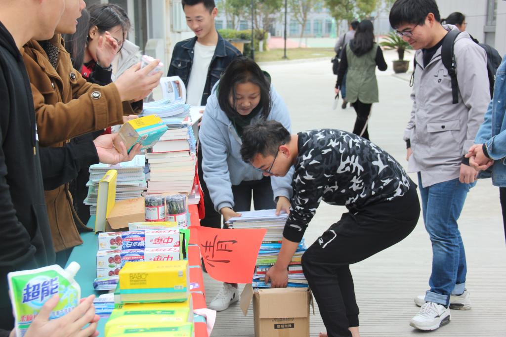 活动吸引了近百名学生参与,大家抱着旧书籍、新练习册、旧杂志等等,让平时不看的书籍有了新的用武之地。