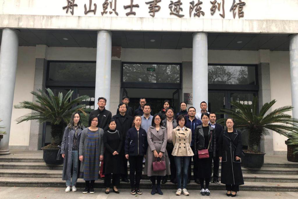 同志们在烈士纪念碑前肃立默哀,寄托对革命先烈的无尽哀思和由衷敬意。在张海波带领下,同志们将手中的菊花整齐地放在碑前,寄托对烈士们的无限哀思和崇敬。舟山烈士陵园负责人兼我校思政实践教学基地外聘教师邬志勋主任引导同志们瞻仰了先烈们的事迹图片和实物。展厅内共展出了不同时代的48位烈士的生平和遗物、重大战役概况和239名舟山籍烈士名录。