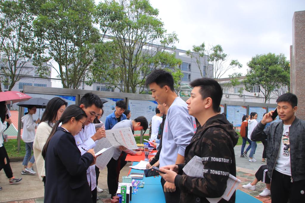 5月8日,同学们在篮球场设摊,工作人员热情邀请过往的同学们在“红十字墙”上签名,向同学们分发《中国红十字报》,同时现场还举行了有奖知识问答。虽然天公不作美,下了小雨,但依旧阻挡不了同学们的积极性。前来参与活动的同学络绎不绝,将展台团团围住。