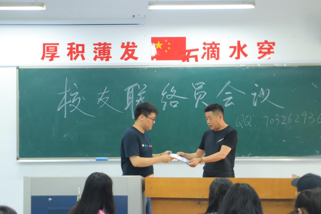 港口管理学院分团委学生会主席、国家奖学金获得者程哲同学被聘为2018届校友联络员总负责人。受聘仪式上,他动情地说:“聘书虽小,但意义重大。它承载着母校对校友的关切之情,也凝聚着校友和母校不可分割的情感。”