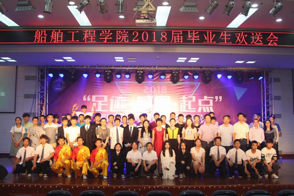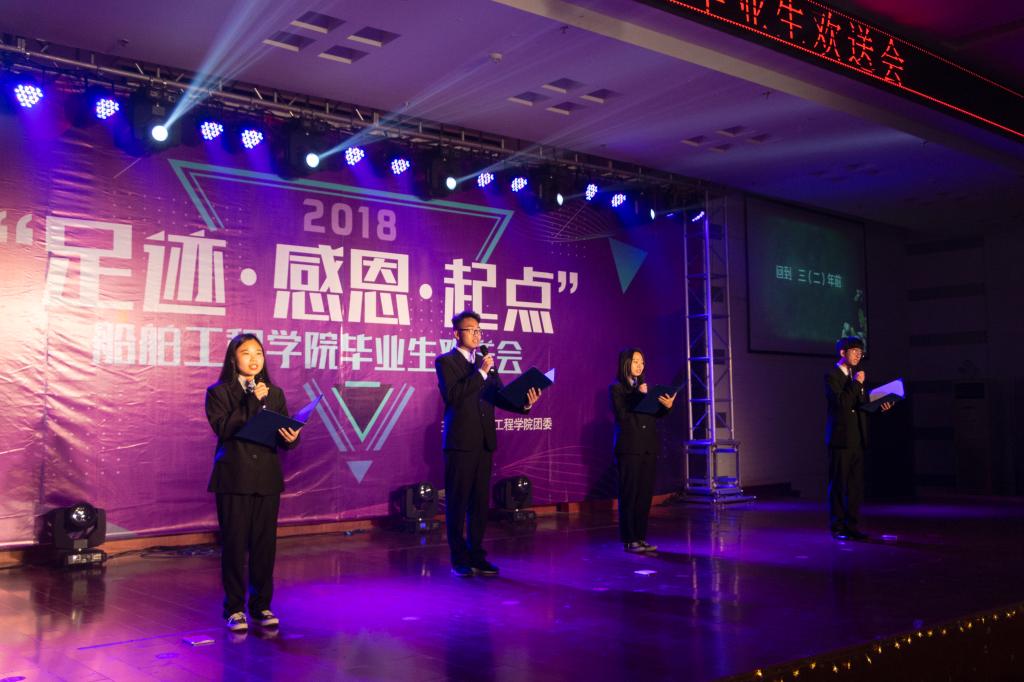 为欢送船舶工程学院2018届毕业生,5月18日晚,船舶工程学院团委于图书馆四楼报告厅举办了以“足迹·感恩·起点”为主题的毕业生欢送晚会。