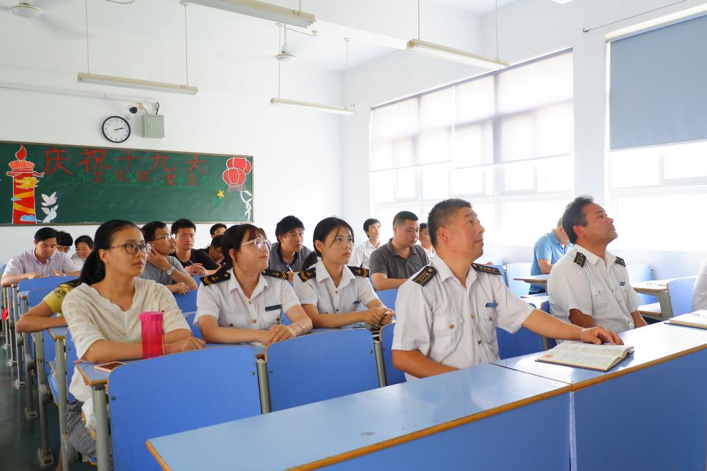 6月27日下午,学院全体师生党员齐聚一堂,聆听了各教工党支部书记的精彩党课。从学习习近平新时代中国特色社会主义思想和红船精神,到做一名合格党员和“四有”教师,通过学习增强了大家作为一名教师党员的责任感和立德树人的使命感。悟初心,强党性,使“四个意识”内化于心,外化于行。课后,全体党员还收看了《百万师生同上一堂课》视频。(图文/航海工程学院)